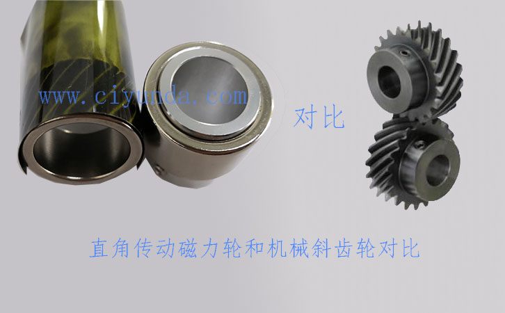 直角傳動(dòng)磁力輪和機(jī)械斜齒輪對(duì)比。